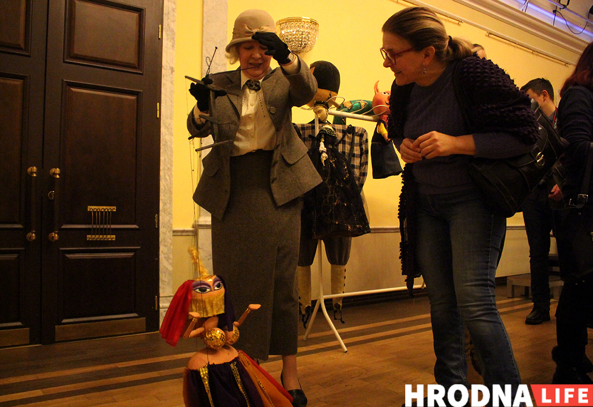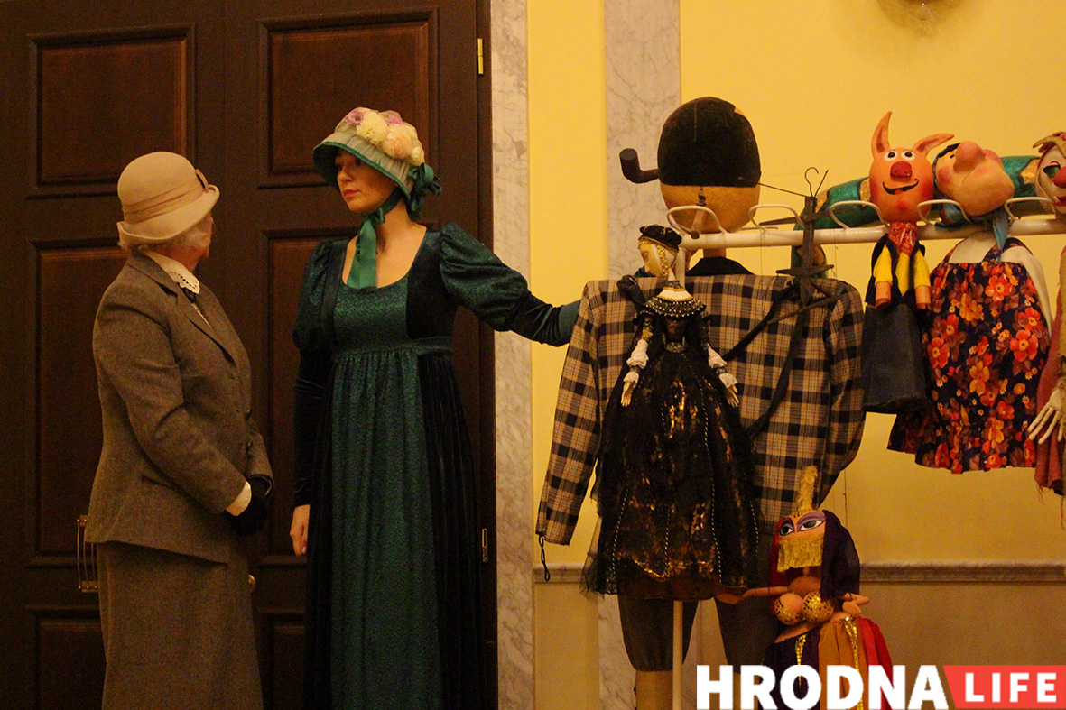 У театра есть свои экскурсоводки — профессиональные актрисы. Они и знакомили гостей с возможностями и секретами театра. Анастасия Сухоносик в образе Соломеи Дэльшнер, первой директорки театра, рассказала историю со самого возведения в 1772 году по приказу Антония Тызенгауза. Людмила Павловская как архивариус театра провела по заветным местам: театральном музее, хранилищу кукол, костюмерной, зале, где изготавливают и сохраняют декорации.