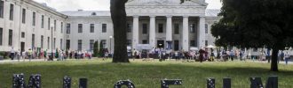Утром 7 апреля на Советской площади в Гродно появились рисунки мелом с силуэтами людей. В таких же позах лежали на улице погибшие в Буче (Украина). Их нашли после ухода из города российских войск.