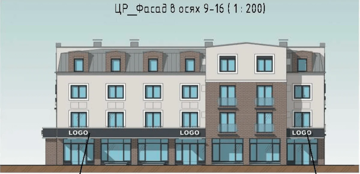 На первом этаже бизнес-апартаментов появятся магазины непродовольственных товаров и санузлы. На цоколе разместят технические помещения и кладовые.