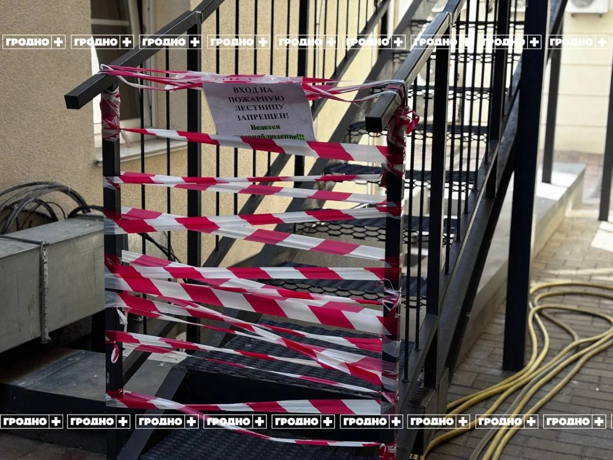 В Гродно ограничили доступ к лестнице во дворе дома на Советской площади, 2. Недавно она стала популярной в TikTok благодаря виду на Фарный костел и центр города. На входе разместили предупреждение о запрете прохода.