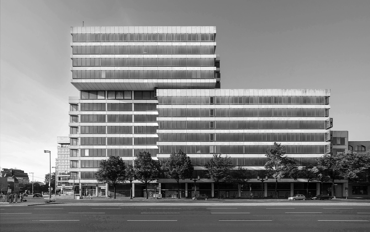 Офисное здание на площади Эрнста Ройтера, 6 в Берлине построили в 1973-74 гг. Во время реконструкции решили ничего принципиально не переделывать. Оно просто выглядит так, как будто его помыли. Сохранились ленточные окна — похожие на окна гродненского Дома быта. В них красиво отражается окружающий город. Гродненское здание можно также “отмыть”.