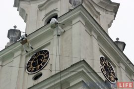 Главный католический храм города с начала мая начали готовить к большой покраске. Сейчас рабочие на высоте очищают стены костела и вскоре приступят к ликвидации…