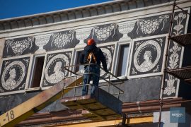 Продолжаются работы над нанесением сграффито над воротами Старого замка в пределах первой очереди реконструкции. Теперь ворота украшают портреты римских императоров и Стефана Батория. Нелепость…