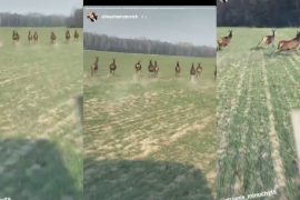 Скрины и видео прислали Onliner.by сразу несколько читателей. «Увидел в инсте, как едет микроавтобус, а перед ним бежит около 10—15 оленей или косуль (не разбираюсь)…