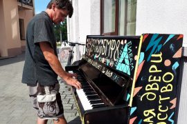 Уличный музыкант Александр Зимин известен в городе игрой на хэндпане. 28 июля он продемонстрировал гродненцам игру на уличном фортепиано, которое установили на Советской на…