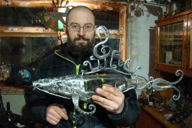 Кованый пейзаж — улочка с пожарной каланчей, самые разные рыбы, драконы, машины и даже та самая детская коляска из фильма «Белые росы». Все это…