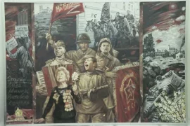 Гродненский государственный историко-археологический музей пополняет фонды. Среди закупки — картина художника из Гродно Владимира Качана «Песни великой победы». На ней — советские партизаны, плакат…