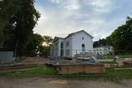 В августе в усадьбе Пусловских в Слониме начался ремонт. Сняли старый асфальт перед зданием, также установили строительные леса. В сентябре слонимчане заметили, что пропала…