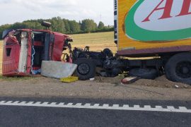 Большегруз занесло после столкновения с легковым автомобилем. Как сообщили lidanews.by в ГАИ, ДТП случилось 7 августа около 18 часов в районе 164-го километра автодороги…