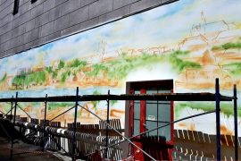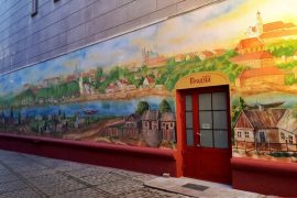 Гродненские художники Павел Иванов и Максим Карпович за две недели нарисовали во дворе торгового центра ABC большое изображение старого Гродно. Стена стала практически точной…