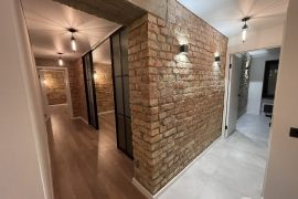 Двухуровневую трехкомнатную квартиру продают на Кремко, 23 в Гродно. Лестница сделана из массива дуба. Перила были вручную выкованы по индивидуальному заказу. «Каждый сантиметр пространства…