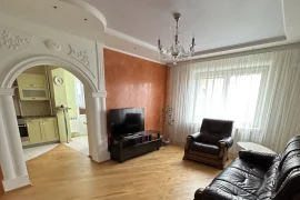 Трехкомнатную квартиру от хозяев с фантазией продают на улице Брикеля в Гродно. В комнатах — потолки сложной формы, лепнина на арках, полки в стене…