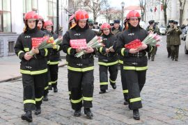 Гродненские спасатели службы МЧС прошли по Советской улице с оркестром и раздарили встречным женщинам 101 тюльпан и шоколадки с информацией, как поступать при пожаре…