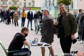 Около 200 гродненцев пришли вечером 26 мая на Советскую площадь, чтобы поставить подпись за выдвижение Светланы Тихановской в кандидаты в президенты Беларуси. Светлана Тихановская…