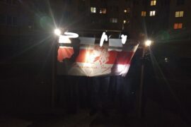 Около 23.00 18 октября трое с помощью строительных лесов поднялись на крышу гимназии Сморгони, где сняли с флагштока красно-зеленый флаг и заменили его на…