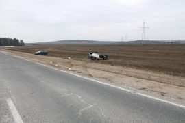 В поле оказались два «Фольксвагена» после вчерашнего столкновения в Волковысском районе. Один остался на колесах, второй лег на крышу, сообщает ГАИ Гродно. Девушка на…