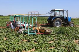 В СПК «Свислочь» Гродненского района можно увидеть необычную картинку. По зеленому полю с помощью трактора движется специальная платформа, на которой лежат работницы и… убирают огурцы. Необычную технику сконструировал…