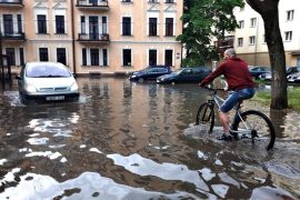 Первый сильный дождь в мае вновь показал гродненцам проблемные места города. Были затоплены центральные улицы. Движение общественного транспорта затруднено.