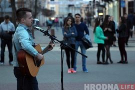Вечером 15 апреля минский уличный музыкант Максим Соколов устроил на Советской площади в Гродно самый настоящий концерт. Артист три часа пел на разных языках…