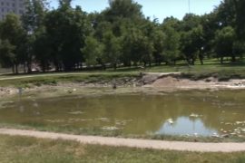 Мертвая рыба, пересохший водоем, загубленные деревья. Экологическая катастрофа — так описывают ситуацию, которая сложилась в сквере Памяти воинов-афганцев по улице Курчатова в Гродно местные…